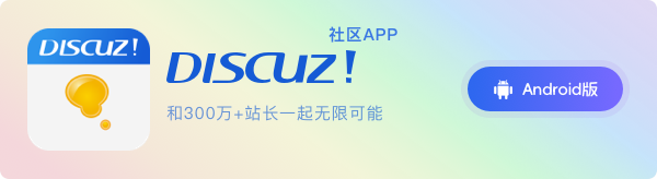 Discuz!? 討論區(qū)SaaS 時代的全新 Discuz! 版本,兩分鐘搭建一個社區(qū)的時代來了。官網(wǎng)地址:w.discuz.vip |